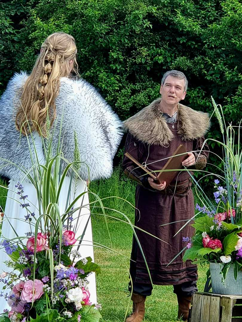 Rituale wie das Met-Trinken aus dem Trinkhorn als Zeichen des gemeinsamen Lebenswegs sowie Eide und Schwüre, die euch als Verbündete im Leben verbinden, prägen eure Zeremonie.